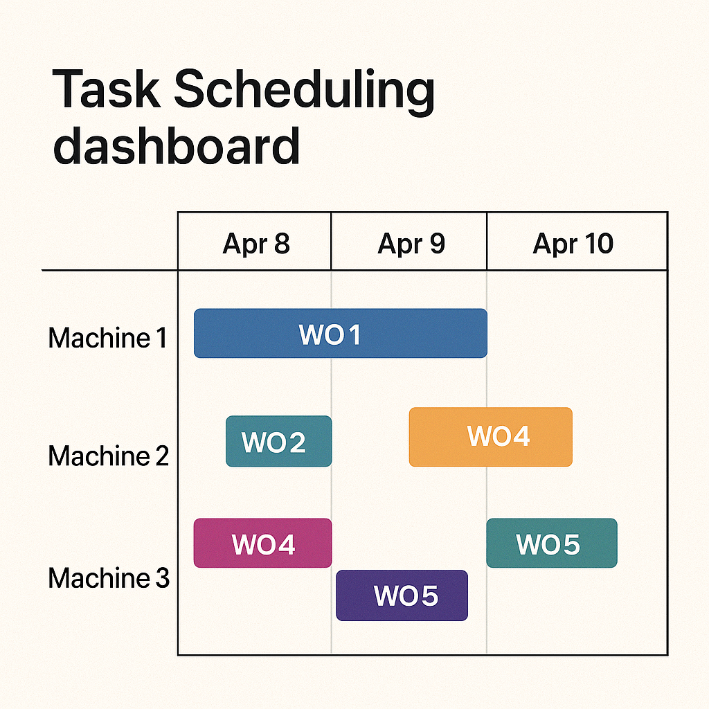 - Work orders couldn’t be visually scheduled, rearranged, or easily reassigned to different machines.